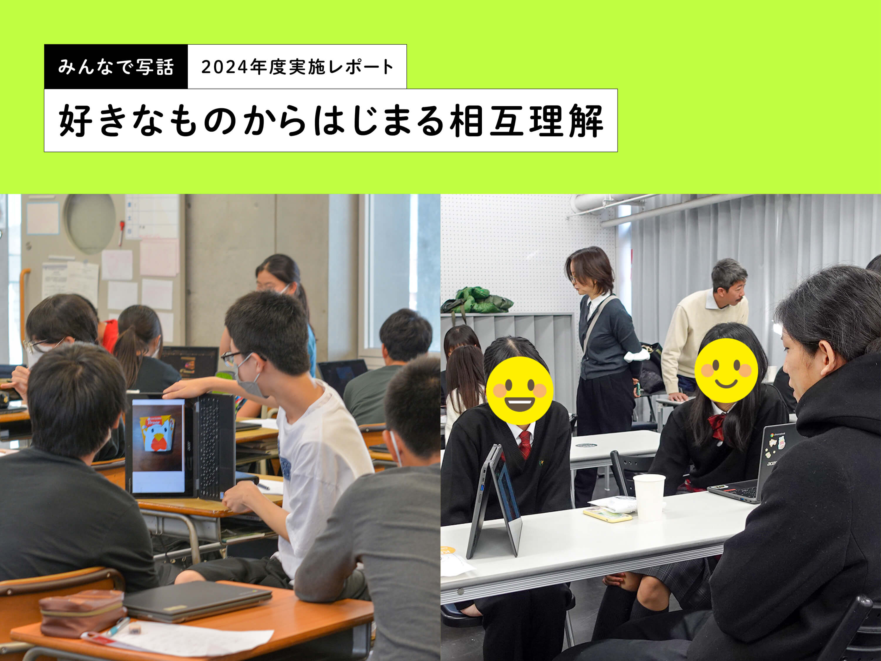 一緒に学校生活を送っていても、クラスメイトに自分の「好き」を伝えたり、クラスメイトの「好き」に真剣に耳を傾けたりする経験は少ないのかもしれない。「写話」に取り組ませてみようと思ったのは、このような考えからでした。実際に写話に取り組んでいる様子を見ていると、普段のコミュニケーションが空気の読み合いになっていて、自己開示がほとんどなかったことに気づかされました。自己開示によって、普段のコミュニケーションにも変化がみられるようになりました。