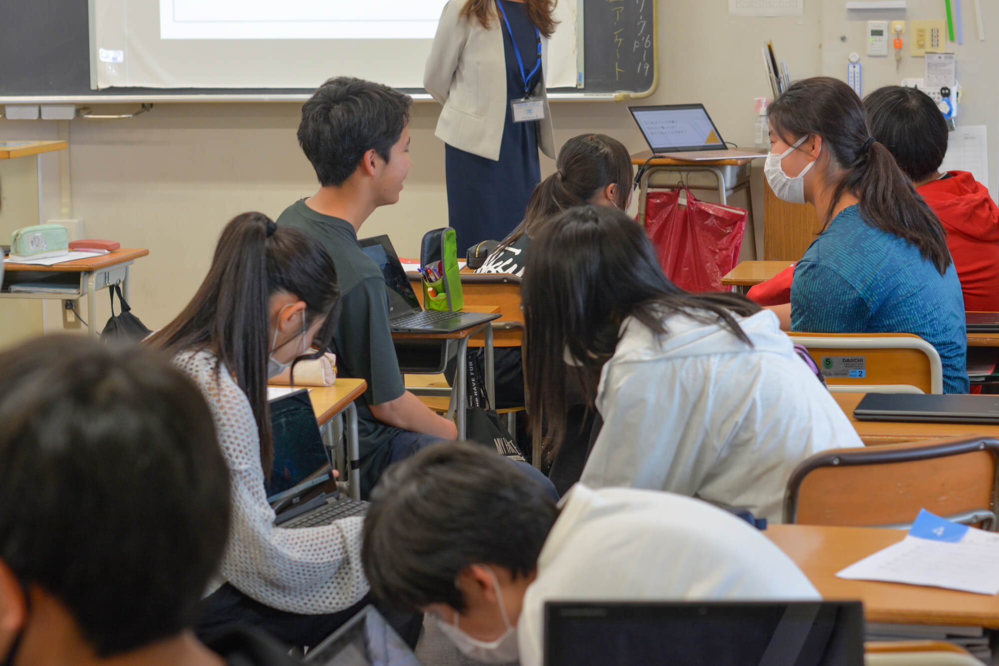 インタビューが始まると、最初はすこし照れているような様子も見られましたが、それも束の間。「なんでこれを選んだの?」「この場所はどこ?」といった質問が飛び交うようになり、教室がにぎやかになっていきました。