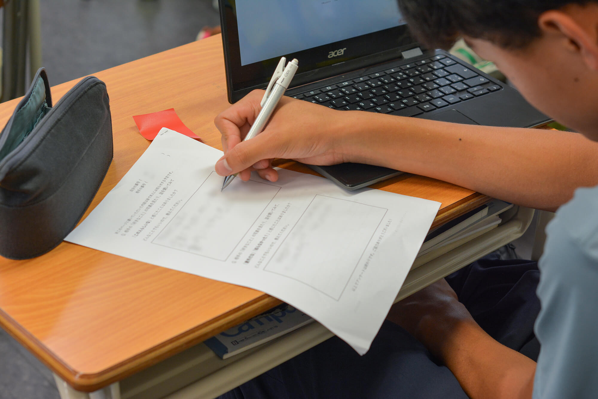 お互いのインタビューが終わると、アンケートシートでふりかえりをおこないました。生徒のみなさんからは「写真で撮ったところ以外の話もできた」「自分の好きなことを話す時は、言葉がたくさん出てきた」「自分でも気づいていなかった自分の『好きなこと』に出会えた気がする」といった声があがりました。