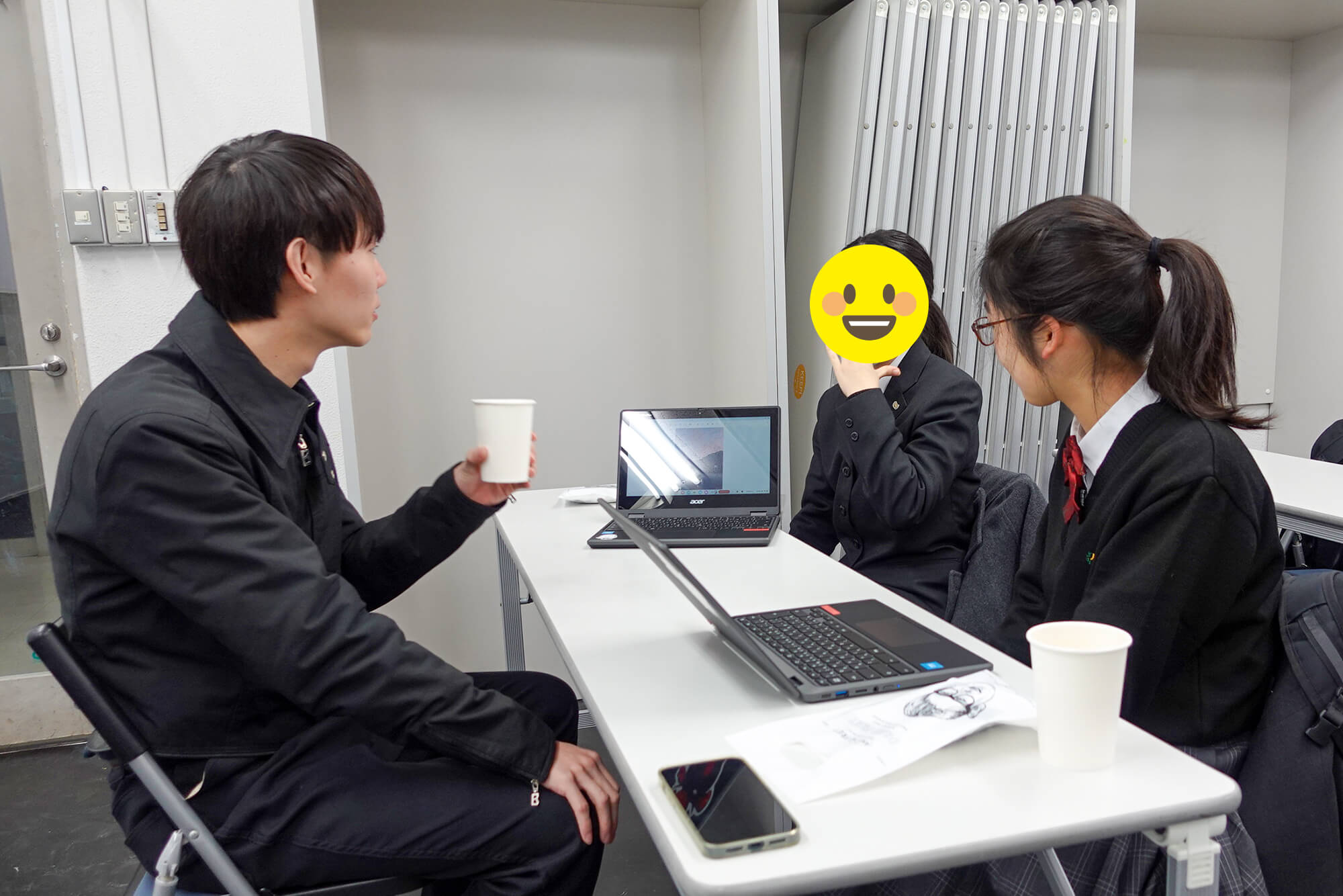 はじめのうちこそ聞き手となった大学生のみなさんから緊張が感じられたものの、インタビューがはじまるとあっという間に打ち解けて、それぞれのグループで会話がはずみます。懐かしのキャラクターや好きなボカロ曲など、年齢が少し離れていても共通する趣味の話で盛り上がっていました。